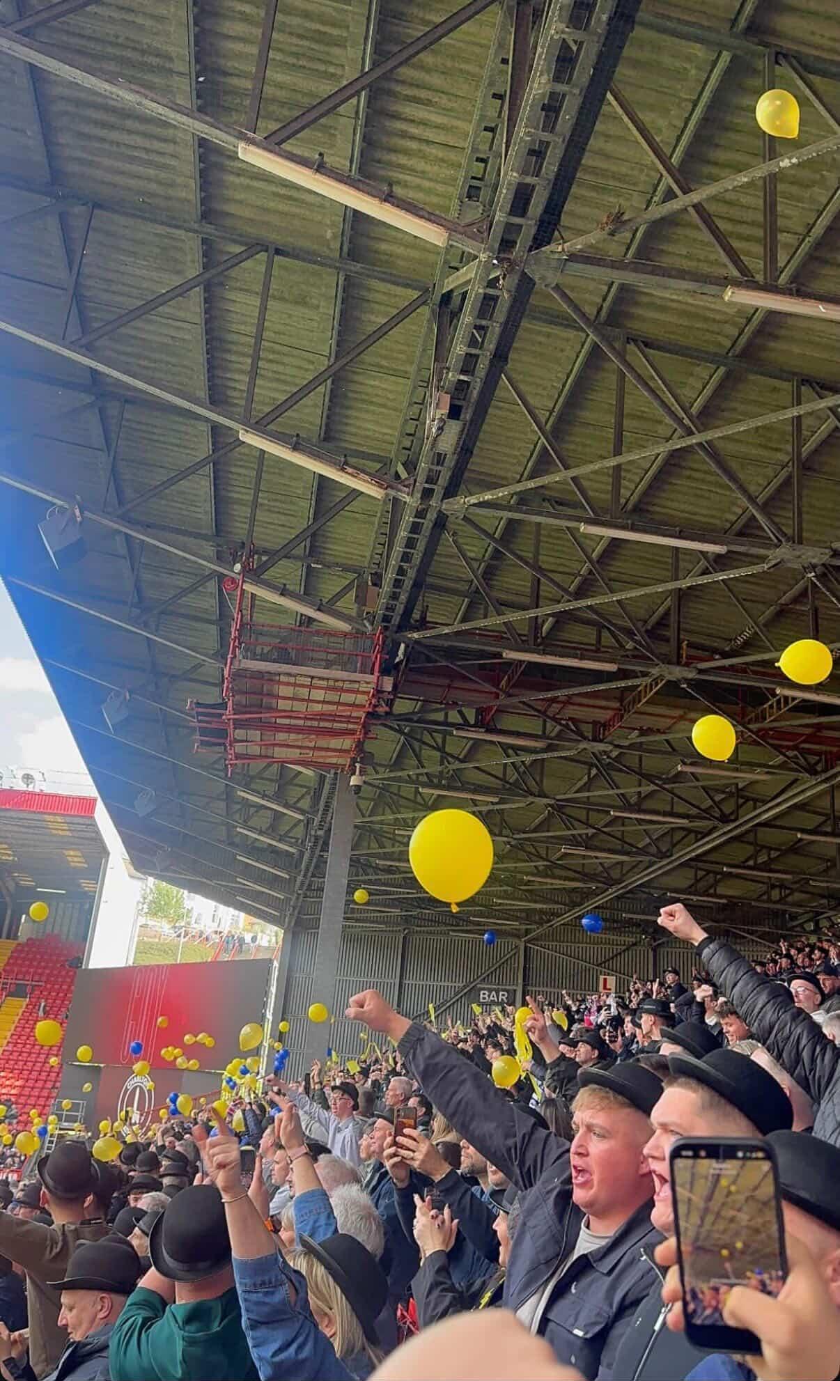 Where the visual side of the day becomes unmistakable: hats up, scarves out, identity made visible.